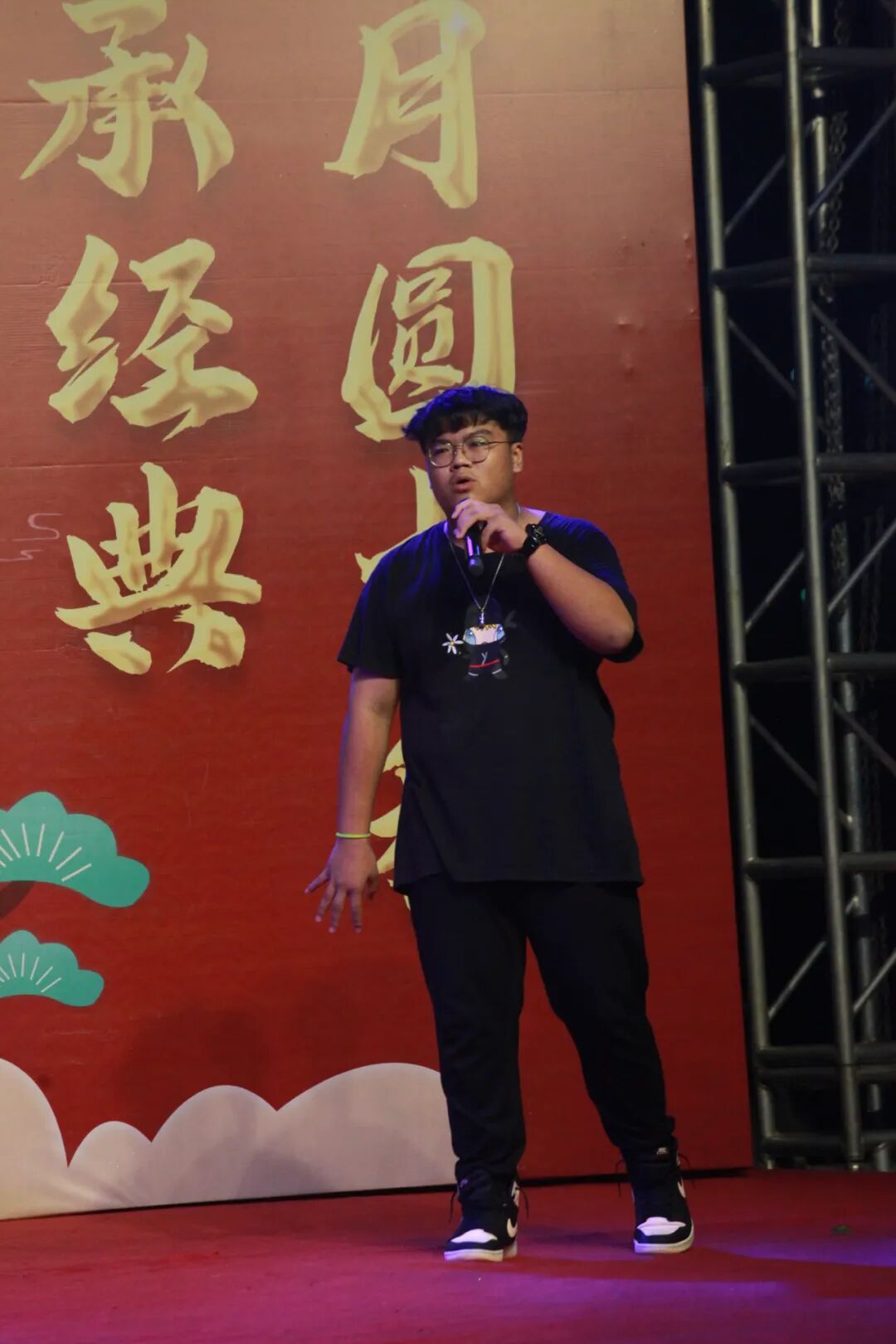 本次晚会的主持采用“3+2”的方式,即3位老师,分别是杨正昕老师、徐丽媛老师、徐颂钦老师,2位同学,分别是蒋志强同学、彭嘉玉同学。晚会现场,他们用高超的主持水准,赢得全体师生的一致好评。