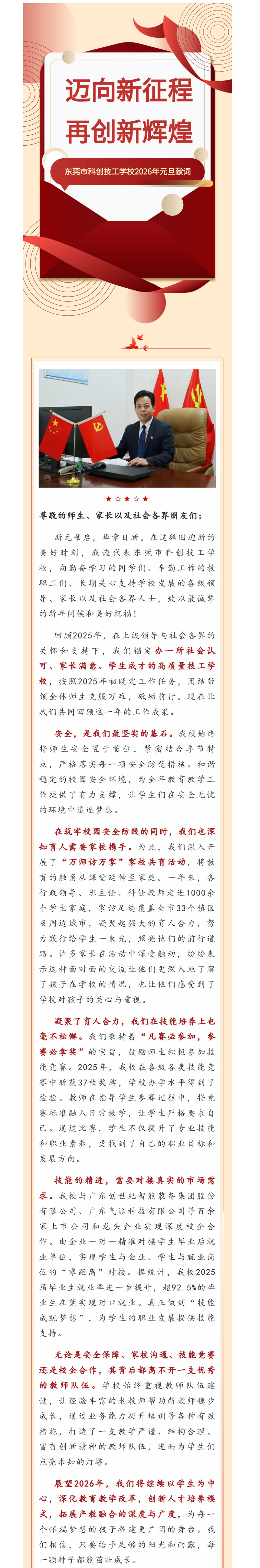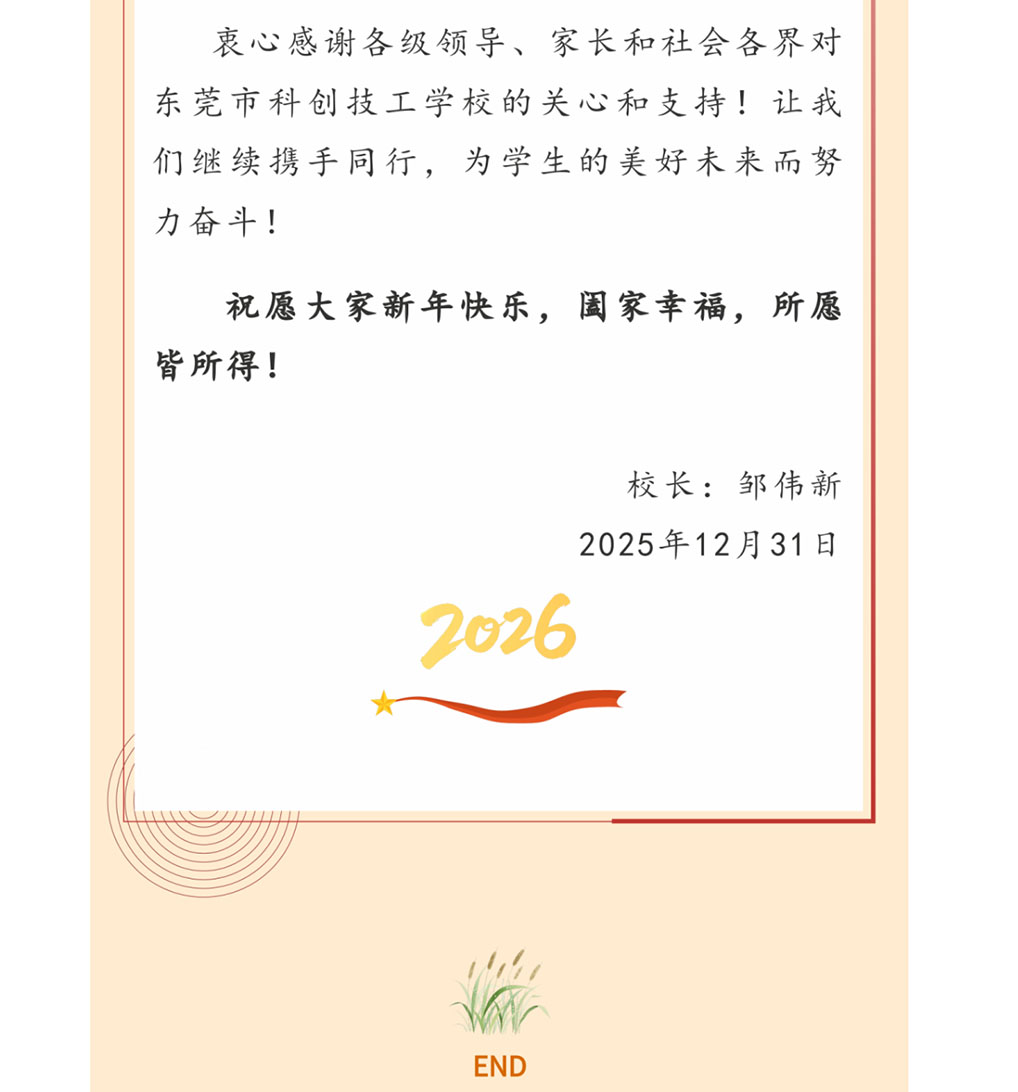 东莞市科创技工学校2026年元旦献词